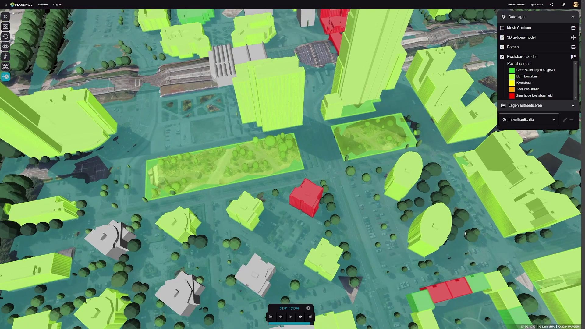 Zo kunnen ze letterlijk zien waar na een hoosbui water blijft staan, welke toegangswegen worden geblokkeerd, waar het water de drempel over gaat en zelfs hoe hoog het water tegen gevels komt. IMAGEM verminderd de complexiteit door geautomatiseerd 3D-stadsmodellen te combineren met interactieve simulaties, zodat iedereen – van beleidsmakers tot inwoners – een helder beeld krijgt van de mogelijke impact van wateroverlast.
