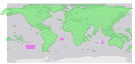 Figuur 2, het monitoren van de aarde door Sentinel 2, laat het mooi zien. Boven de oceanen, die zo’n 71% van het aardoppervlakte beslaan, worden geen opnames gemaakt. Dat scheelt een hoop data, data waarvan we eerst dachten dat we deze niet nodig hadden.