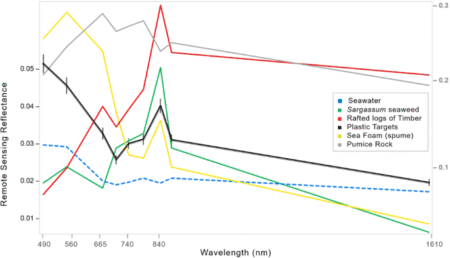 Wanneer er zonlicht op een object valt zal een deel van het licht teruggekaatst worden, dat is voor ons als mens zichtbaar als de verschillende kleuren. Een satelliet kan veel meer zien, een van de onderwerpen uit het artikel laat zien wat het spectrale profiel van “rotzooi” in de zee is