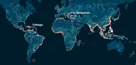 Voor dit blog heb ik twee willekeurige voorbeelden bij Tobago en de Bosporus genomen. Geheel willekeurig natuurlijk niet, de feiten dat er plastic uitstoot is en er recentelijke heldere beelden vanuit het Sentinel-2 programma beschikbaar waren hebben mijn keuze wel beïnvloed.