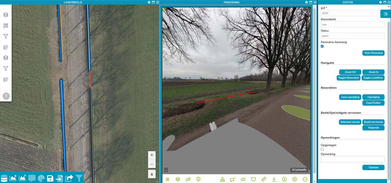 - Automatische weergave van gekoppelde databronnen, zoals panorama- en oblique beelden, bij detecties.